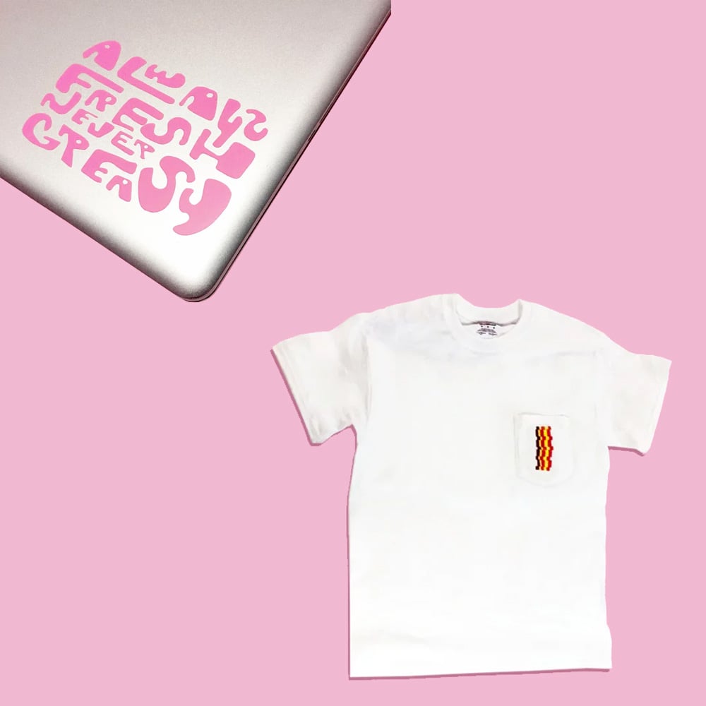 100% Handprinted Shirts and Hand-cut VInyl Stickers!